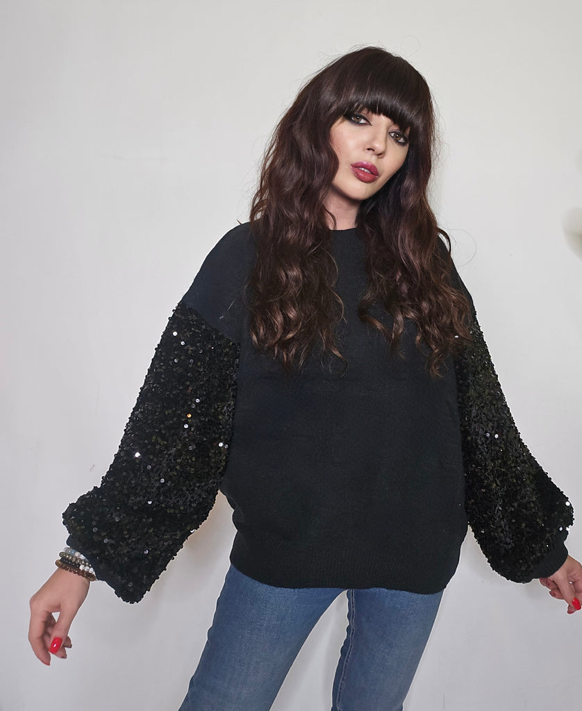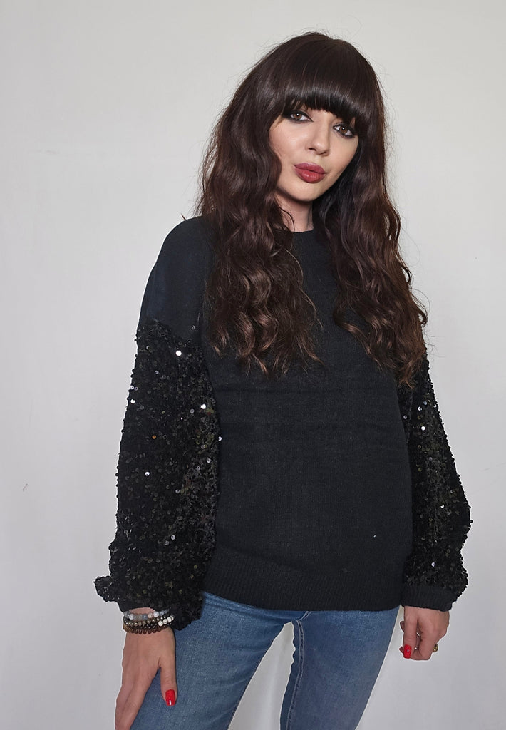 Jersey de punto con mangas de lentejuelas.